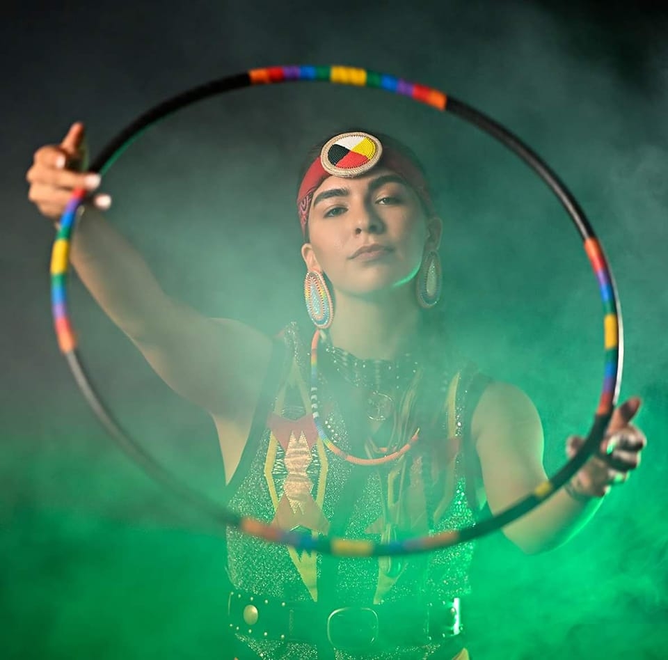 Cette année, au MEDGALA 2025, nous aurons l’honneur d’accueillir Makhena Rankin Guerin. Artiste bispirituelle d’origine anishinaabe algonquine et canadienne-française, et membre de la Première Nation Abitibiwinni, elle nous offrira un spectacle de danse du cerceau.